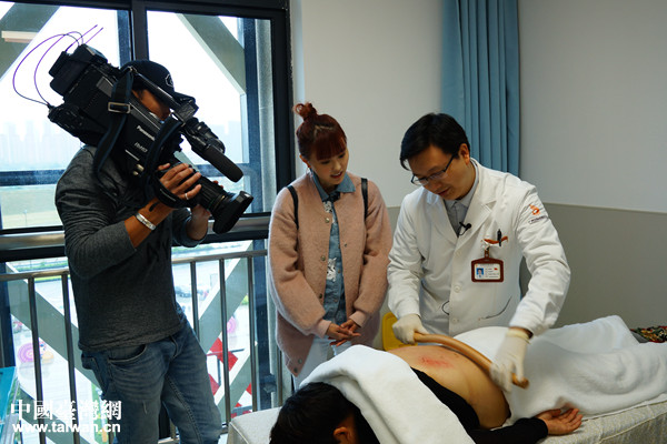 攝制組對刮痧技法進行采訪。(圖片來源:廣西南寧市臺辦)