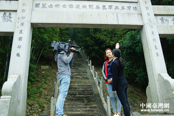 攝制組在昆侖關(guān)戰(zhàn)役遺址采訪南牌坊。(圖片來源:廣西南寧市臺辦)