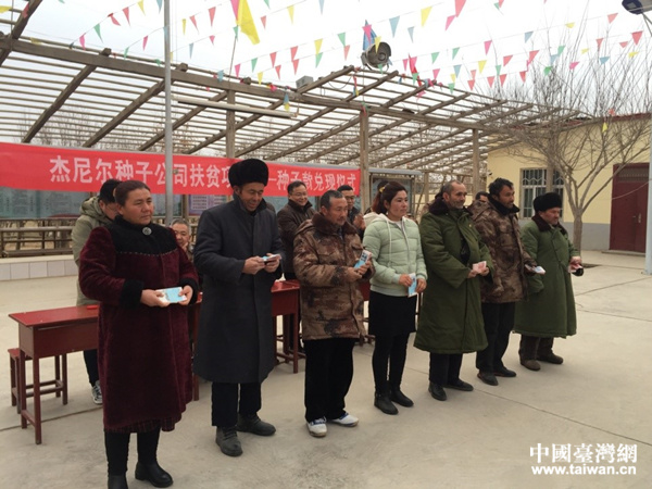 中國臺灣網(wǎng)12月28日訊 24日,新疆生產(chǎn)建設(shè)兵團農(nóng)十四師皮山農(nóng)場一連召開了一場特殊的儀式——“杰尼爾種子公司扶貧項目——種子款兌現(xiàn)儀式”;顒蝇F(xiàn)場,杰尼爾種子公司新疆片區(qū)負責(zé)人趙文言將78185元種子款送到一連7戶職工群眾手中。每戶得到了6100元至8600元不等的種子款。