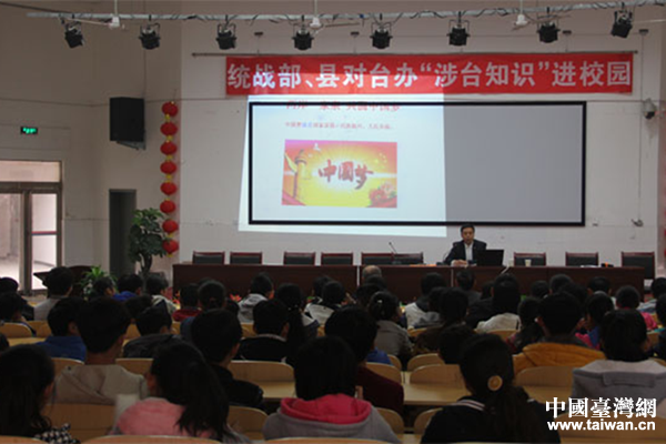 安陽市滑縣臺(tái)辦聯(lián)合縣委黨校在滑縣英民中學(xué)和道口鎮(zhèn)第一初級(jí)中學(xué)開展了“涉臺(tái)知識(shí)進(jìn)校園”活動(dòng);顒(dòng)中,滑縣縣委黨校孫貴卿老師為同學(xué)們集中講授了相關(guān)涉臺(tái)知識(shí),使600余名中小學(xué)生更直觀地認(rèn)識(shí)和了解了臺(tái)灣問題的由來、黨中央的對(duì)臺(tái)方針政策和兩岸關(guān)系發(fā)展現(xiàn)狀。