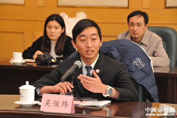 在魯臺灣青年代表發(fā)言。(圖片來源:山東臺港澳辦)