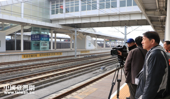 攝制組在江油火車站拍攝。(圖片來源:四川省臺辦)