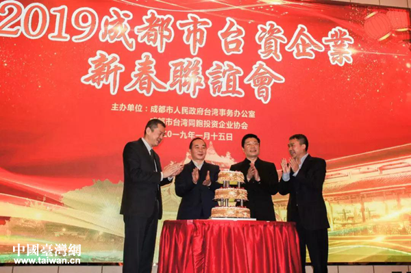 中國臺灣網(wǎng)1月18日成都訊 2019年1月16日,2019成都市臺資企業(yè)新春聯(lián)誼會舉行。省市有關(guān)部門負(fù)責(zé)人與在蓉臺商共計550余人歡聚一堂,喜迎新春。四川省臺辦主任羅治平、成都市委常委吳凱、成都市臺協(xié)會長徐大偉出席并致辭,成都市臺辦主任戴浚主持聯(lián)誼會。