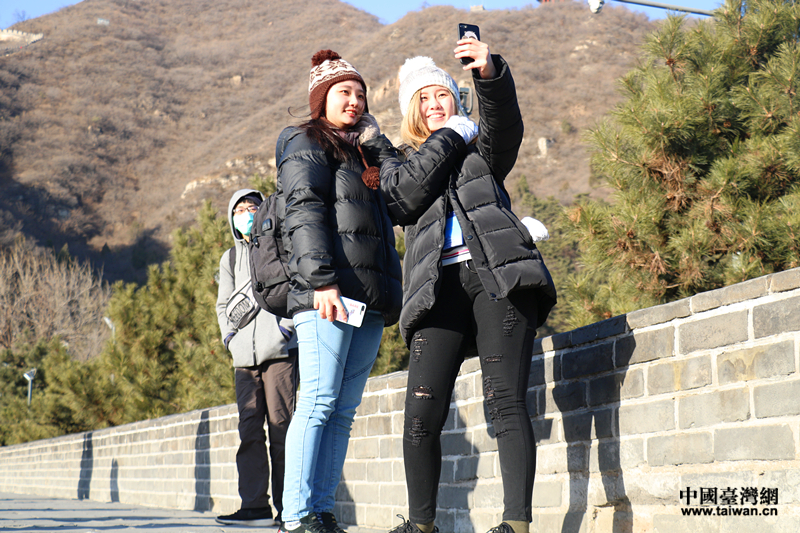 臺(tái)灣學(xué)生游覽長(zhǎng)城并拍照留念。(中國(guó)臺(tái)灣網(wǎng) 郜利敏 攝)