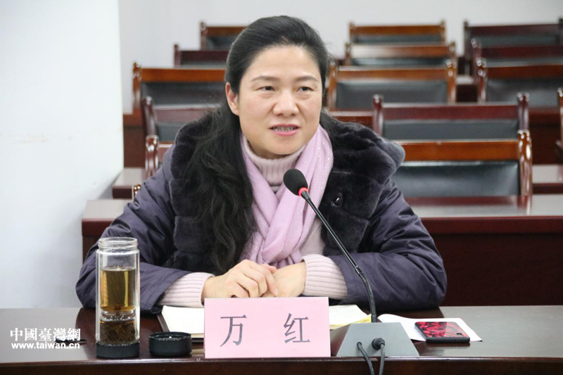黃陂區(qū)人民政府副區(qū)長(zhǎng)萬(wàn)紅出席座談會(huì)并講話。(圖片來(lái)源:武漢市臺(tái)辦)