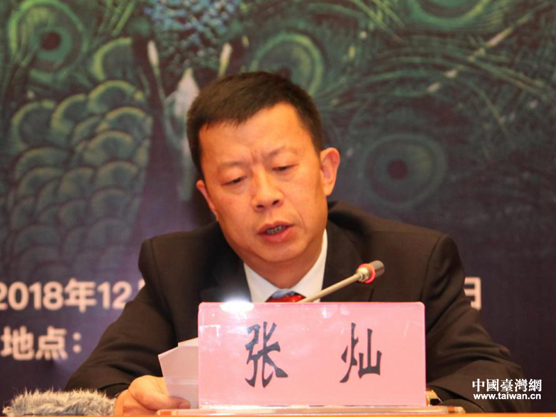 云南省臺辦副主任、新聞發(fā)言人張燦通報活動相關(guān)情況。(圖片來源:云南省臺辦)