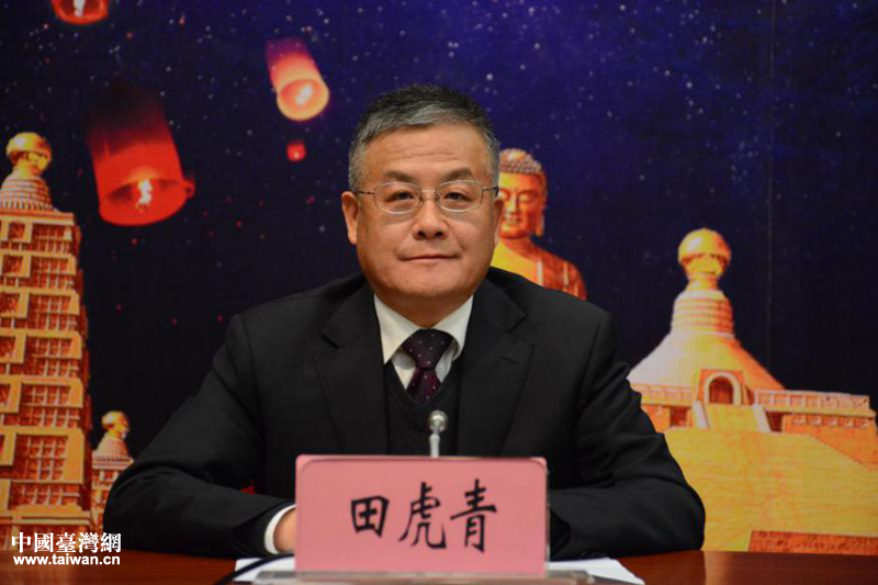 云南省人民政府新聞辦公室專職副主任田虎青主持新聞發(fā)布會。(圖片來源:云南省臺辦)