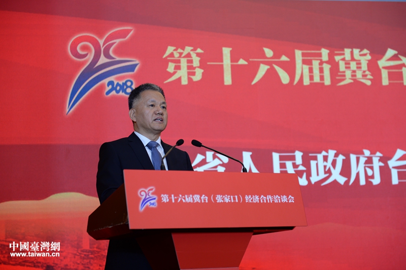 河北省臺辦主任王立杰在第十六屆冀臺會致辭。(圖片來源:河北省臺辦)
