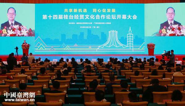2018年10月23日,第十四屆桂臺(tái)經(jīng)貿(mào)文化合作論壇在廣西南寧開(kāi)幕。(圖片來(lái)源:廣西臺(tái)辦)
