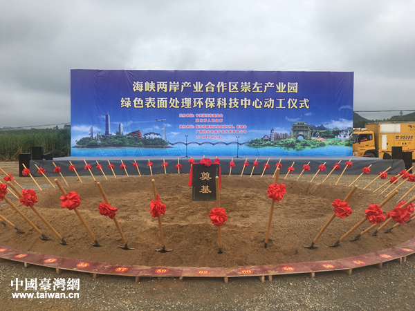 2018年10月22日,海峽兩岸產(chǎn)業(yè)合作區(qū)崇左產(chǎn)業(yè)園舉行綠色表面處理環(huán)保科技中心動(dòng)工。(圖片來(lái)源:廣西臺(tái)辦)