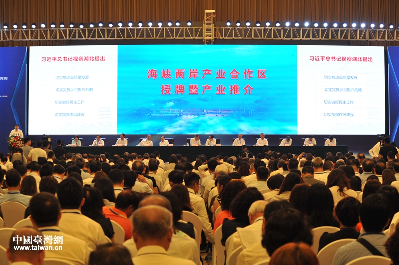 海峽兩岸產(chǎn)業(yè)合作區(qū)授牌暨產(chǎn)業(yè)推介。(圖片來源:湖北省臺辦)