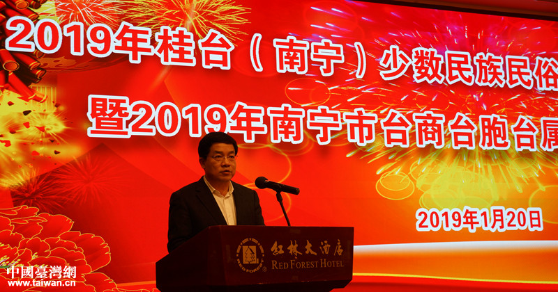 廣西臺(tái)辦副主任李文致辭。(圖片來(lái)源:廣西南寧市臺(tái)辦)