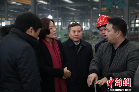1月15日,江西省人民政府副省長吳忠瓊一行前往昆山臺資企業(yè),實地參觀生產(chǎn)車間,了解產(chǎn)品工藝和市場銷售情況。(劉占昆 攝)