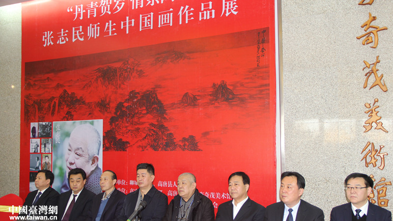 中國臺灣網(wǎng)1月29日高唐訊 為活躍高唐縣人民群眾春節(jié)期間的文化生活,進一步豐富海峽兩岸文化交流基地內(nèi)涵,“丹青賀歲 情系兩岸——張志民師生國畫作品展”于1月28日在李奇茂美術(shù)館開展。聊城市政協(xié)港澳臺僑和外事工作委員會主任孫光木,高唐縣委書記張穎,聊城市委宣傳部副部長趙昌軍,聊城市臺辦副主任陶新鎮(zhèn),高唐縣委副書記孫榮軍,山東藝術(shù)學(xué)院原院長、山東省文聯(lián)副主席、山東省美術(shù)家協(xié)會名譽主席、中華兩岸文學(xué)藝術(shù)研究院院長張志民等出席了開展儀式。