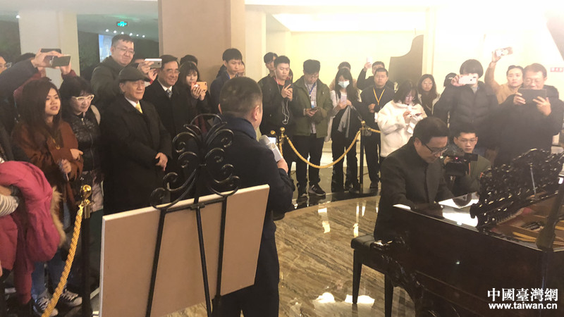 參訪團(tuán)參觀九龍坡區(qū)黃桷坪鋼琴博物館,兩岸音樂愛好者一起即興表演,用音樂演繹了“兩岸一家親”。(圖片來源:重慶市臺辦)