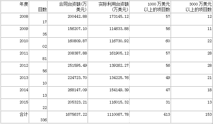 表3:2008年—2015年山東利用臺資情況