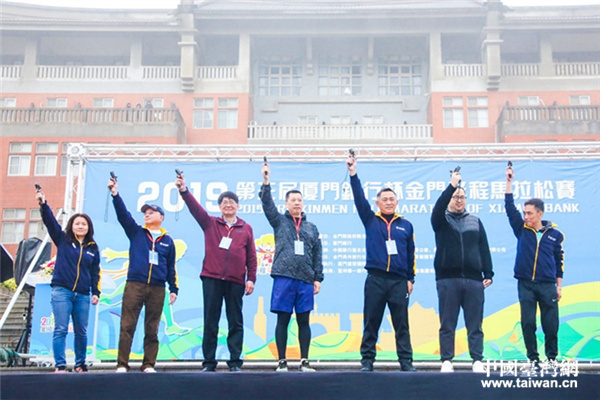 金門縣縣長楊鎮(zhèn)浯,廈門銀行董事長吳世群、行長洪主民等一起為比賽鳴槍。(圖片來源:廈門銀行)