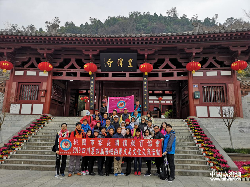 桃園市家長(zhǎng)關(guān)懷教育協(xié)會(huì)參訪團(tuán)參觀皇澤寺。(圖片來(lái)源:廣元市臺(tái)辦)
