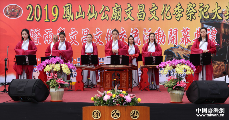 中國臺(tái)灣網(wǎng)4月3日訊 3月29日至4月1日,為期四天的“2019年兩岸文昌文化季交流活動(dòng)”在高雄舉行,包括洞經(jīng)古樂團(tuán)在內(nèi)的四川梓潼文昌文化交流團(tuán)一行23人,參加了開幕典禮、祭祀大典,并進(jìn)行兩場洞經(jīng)音樂表演以及校園巡禮。