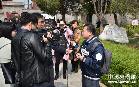 臺(tái)灣指傳媒社長游勝鈞接受河南省電視臺(tái)等內(nèi)地媒體采訪。。(圖片來源:周口市臺(tái)辦)