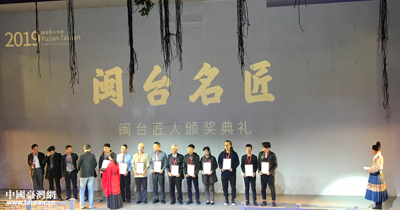 為閩臺匠人中的杰出代表頒發(fā)“閩臺名匠”等相關(guān)榮譽稱號證書。(圖片來源:福州市臺港澳辦)