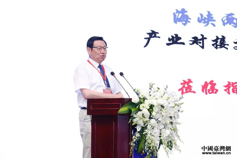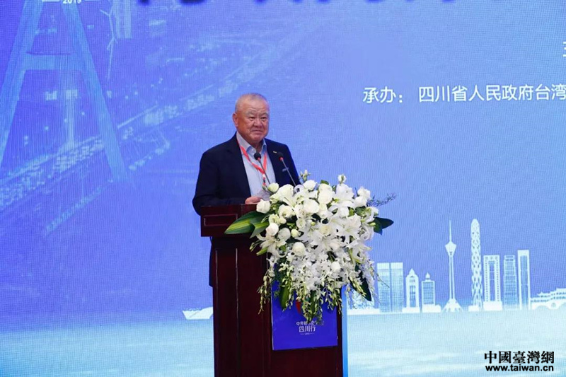 臺(tái)灣工商協(xié)進(jìn)會(huì)理事長和臺(tái)玻集團(tuán)董事長林伯豐致辭。(圖片來源:四川臺(tái)辦)