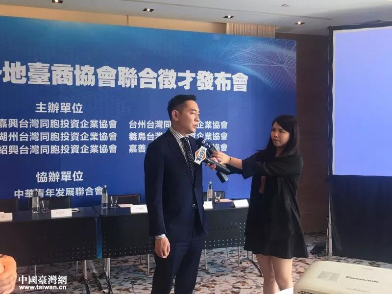 發(fā)布會(huì)主持人、敏實(shí)集團(tuán)員工接受采訪。(圖片來(lái)源:浙江省臺(tái)辦)