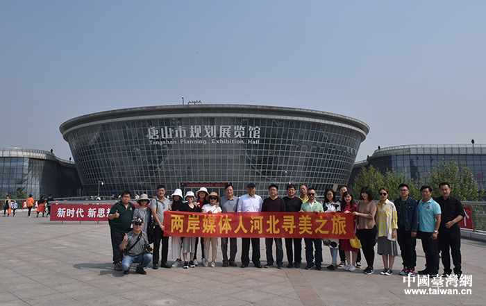“尋美之旅——兩岸媒體河北巡禮”新聞交流活動(dòng)日前舉辦。兩岸媒體人在唐山市規(guī)劃展覽館前合影。(來源:河北省臺(tái)辦)