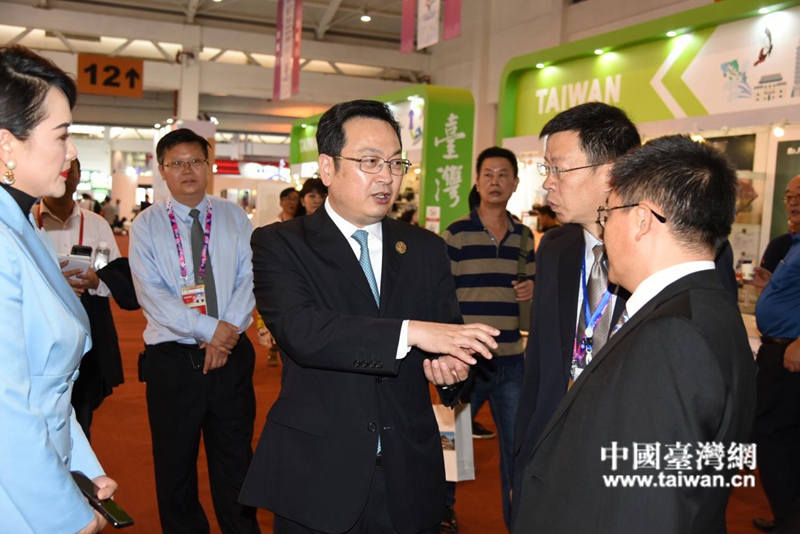 張國(guó)華副省長(zhǎng)在涉臺(tái)特裝區(qū)看望臺(tái)灣參展商。(圖片來(lái)源:云南省臺(tái)辦)