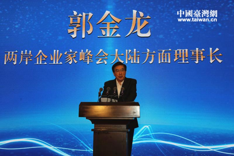 兩岸企業(yè)家峰會大陸方面理事長郭金龍致辭。(圖片來源:山東省臺港澳辦)