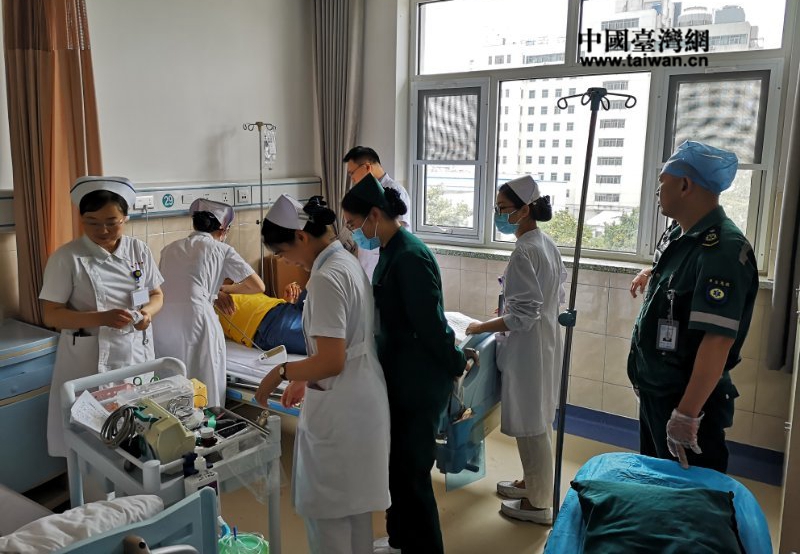 6月13日上午,臺商張良韜先生從臺兒莊區(qū)轉(zhuǎn)至市立醫(yī)院就診。(圖片來源:山東省臺辦)