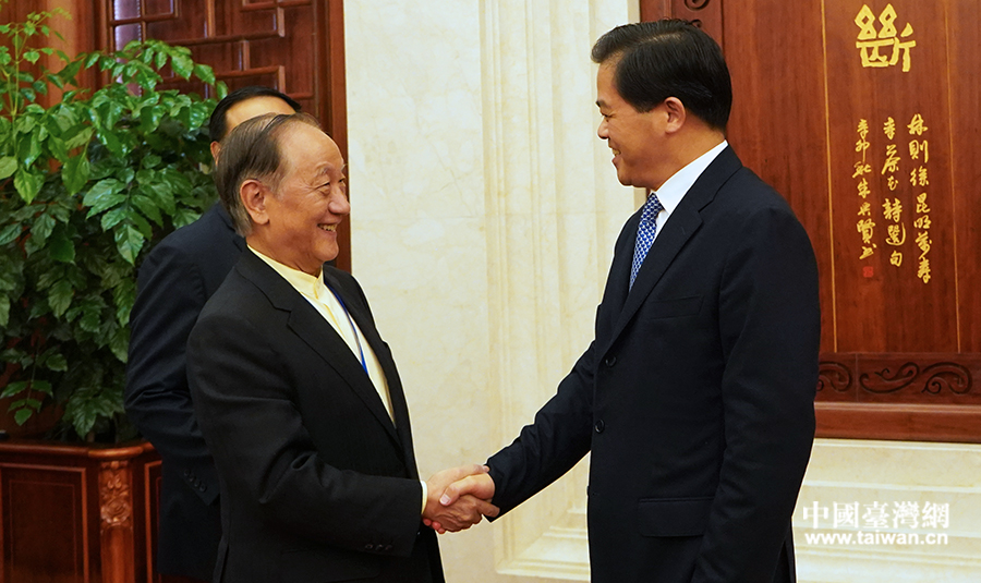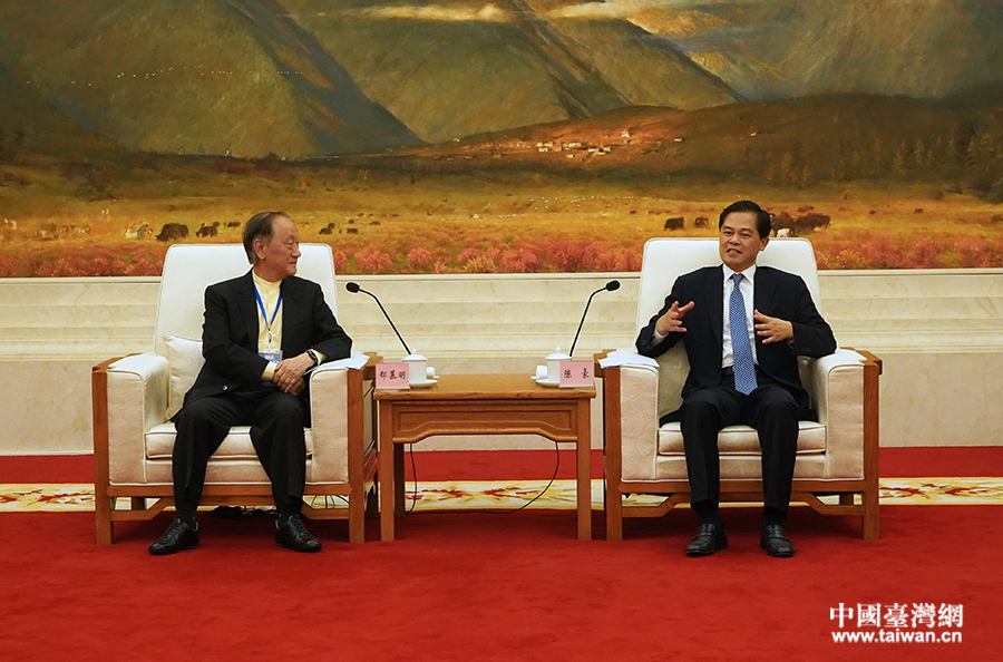 25日下午,中共云南省委書記陳豪在昆明會見了來滇出席第八屆云臺會的臺灣新黨主席郁慕明一行。(來源:云南省臺辦)