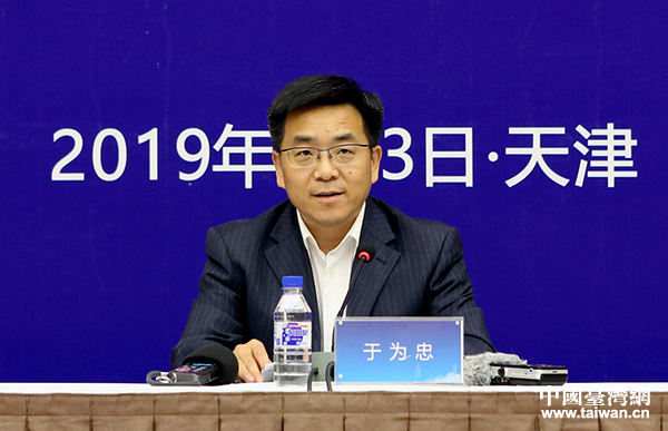 天津市臺(tái)辦副主任于為忠介紹第十二屆津臺(tái)投資合作洽談會(huì)暨2019年天津·臺(tái)灣商品博覽會(huì)總體情況。(中國(guó)臺(tái)灣網(wǎng) 李奕均 攝)