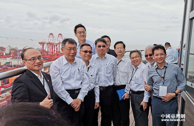 臺(tái)北市長(zhǎng)柯文哲一行參訪東海大橋、洋山深水港(四期)碼頭、浦東新區(qū)城市綜合運(yùn)營(yíng)管理中心等地。(中國(guó)臺(tái)灣網(wǎng)發(fā))