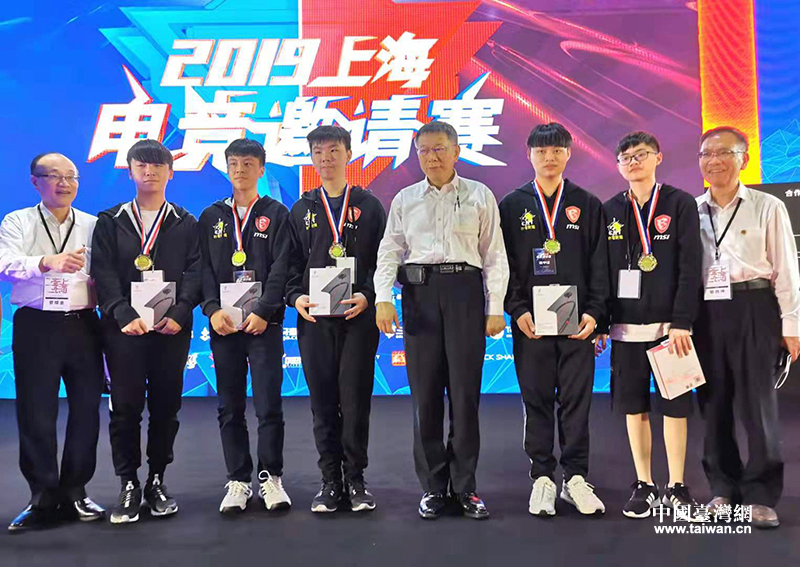 臺(tái)北市長(zhǎng)柯文哲參加2019上海電競(jìng)邀請(qǐng)賽,為獲獎(jiǎng)?wù)哳C獎(jiǎng)。(中國(guó)臺(tái)灣網(wǎng)發(fā))
