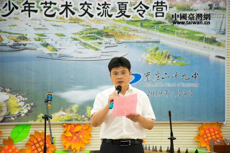 棗莊二十九中副校長林華剛致歡迎詞,他介紹了薛城的歷史人文背景,表達了對臺灣首任巡撫劉銘傳的景仰之意,希望借助棗臺青少年藝術交流夏令營這個平臺,向銘傳中學學習,增進兩岸、兩校之間的溝通了解,增強對傳統(tǒng)藝術文化和共同家園的感知與認同,合力推進中華文化傳承與發(fā)展,共圓中華民族偉大復興的中國夢!
