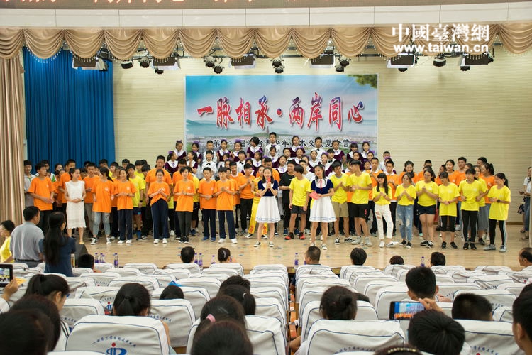 在棗莊市第二十九中,兩地學(xué)子進(jìn)行了藝術(shù)交流展演。這是基隆銘傳中學(xué)第五次訪問該校。棗莊二十九中副校長(zhǎng)林華剛致歡迎詞,棗莊二十九中學(xué)生家長(zhǎng)、非物質(zhì)文化遺產(chǎn)傳承人張?jiān)MがF(xiàn)場(chǎng)講解了“魯班鎖”的結(jié)構(gòu)原理,引起臺(tái)灣師生的濃厚興趣。棗莊二十九中校長(zhǎng)魯大東、家委會(huì)副主任劉娟和銘傳中學(xué)家委會(huì)主任趙承緯分別代表雙方學(xué);ベ(zèng)了紀(jì)念品。兩岸兩校學(xué)生同臺(tái)競(jìng)技,交流和分享彼此對(duì)藝術(shù)的感悟和理解,聯(lián)袂為現(xiàn)場(chǎng)的觀眾奉上了一場(chǎng)集合奏、獨(dú)奏、獨(dú)唱、合唱、情景劇表演等多種形式的饕餮藝術(shù)大餐;基隆銘傳中學(xué)學(xué)生靳皓雅和棗莊二十九中學(xué)生李忠霖共同書寫了“一脈相承·兩岸同心”條幅,詮釋青少年藝術(shù)交流夏令營(yíng)主題,抒發(fā)了海峽兩岸割舍不斷的血脈親情。