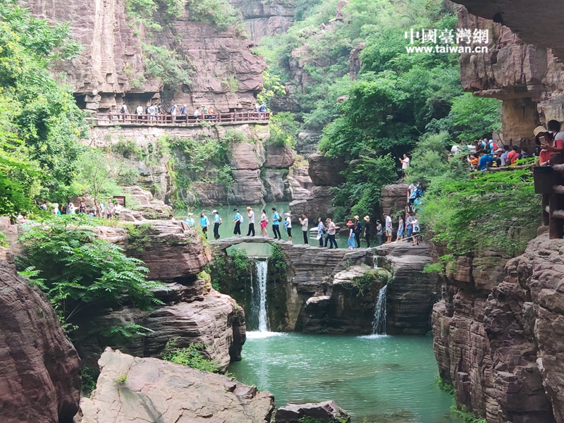 研習營在焦作的第一站是云臺山。據(jù)工作人員介紹,焦作云臺山地質(zhì)公園和臺灣野柳地質(zhì)公園已經(jīng)于7月19日正式締結(jié)為“姐妹公園”,使得營員們對云臺山又多了一份親切。作為全球首批地質(zhì)公園,云臺山秀美的自然風光深深地吸引了研習營營員們。營員王裕源是第一次來到大陸,他激動地說,眼前的祖國大陸與印象中的完全不一樣,給他帶來了一個又一個驚喜。昨天的殷墟讓他看到了中華文化的博大精深;今天的云臺山讓他看到了祖國山河的秀麗多姿,讓人難忘。他不時將山中美景用手機分享給臺灣的朋友和同學們,共享自己的興奮之情。