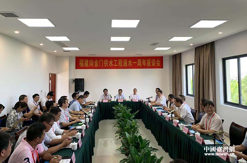 通水一周年座談會上,兩岸業(yè)主代表通報了通水一年來的情況,相關(guān)專家代表就金門供水經(jīng)驗和如何更好地推動兩岸“新四通”工作做交流分享。