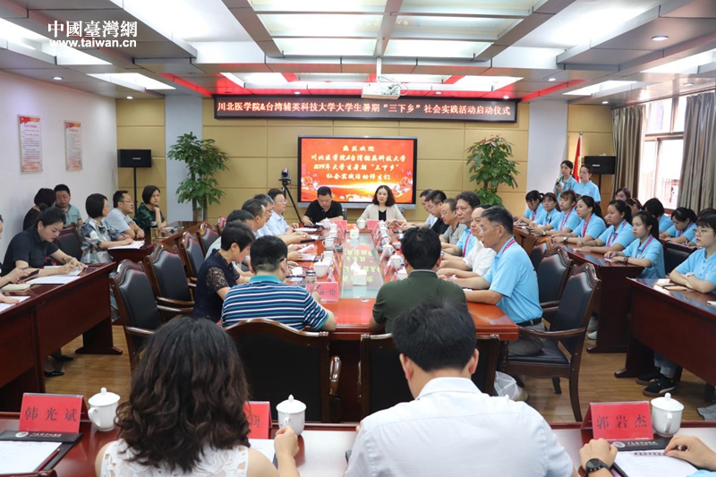 臺(tái)灣師生在廣元市中心醫(yī)院參加“三下鄉(xiāng)”社會(huì)實(shí)踐活動(dòng)啟動(dòng)儀式(圖片來(lái)源:廣元市臺(tái)辦)