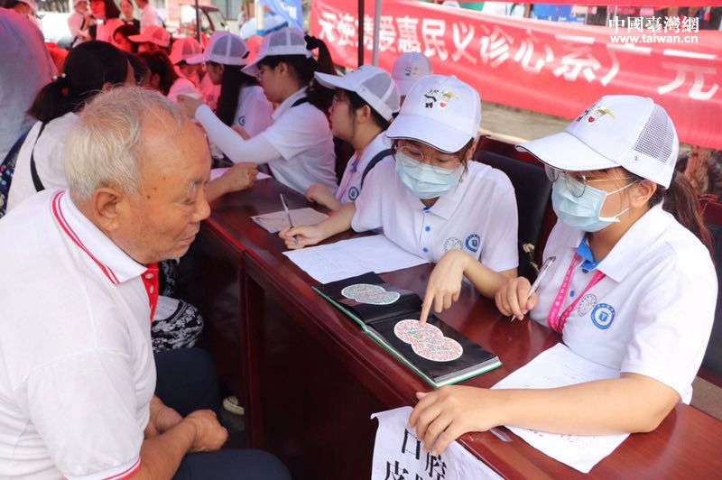臺(tái)灣大學(xué)生在利州區(qū)大石鎮(zhèn)義診(圖片來(lái)源:廣元市臺(tái)辦)