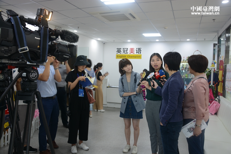 在濟(jì)南英冠美語學(xué)校,魯臺(tái)媒體記者聯(lián)合采訪團(tuán)詳細(xì)了解臺(tái)胞李蓉在濟(jì)南的創(chuàng)業(yè)故事。校長(zhǎng)李蓉是一位90后臺(tái)胞,丈夫是濟(jì)南人,幾年前創(chuàng)立濟(jì)南英冠美語培訓(xùn)機(jī)構(gòu),招收的學(xué)生年齡在5-15歲之間,也為成人提供針對(duì)性的一對(duì)一教學(xué)服務(wù)。開設(shè)的特色課程有Story Time、親子、留學(xué)、旅游、職場(chǎng)英語、航空英語及暑期游學(xué)計(jì)劃等,讓學(xué)生在一種輕松的氛圍中體驗(yàn)最正統(tǒng)的美式教育。 現(xiàn)有學(xué)生300多人,開設(shè)有兩個(gè)校區(qū),下一步打算擴(kuò)大合并到新的校區(qū)。