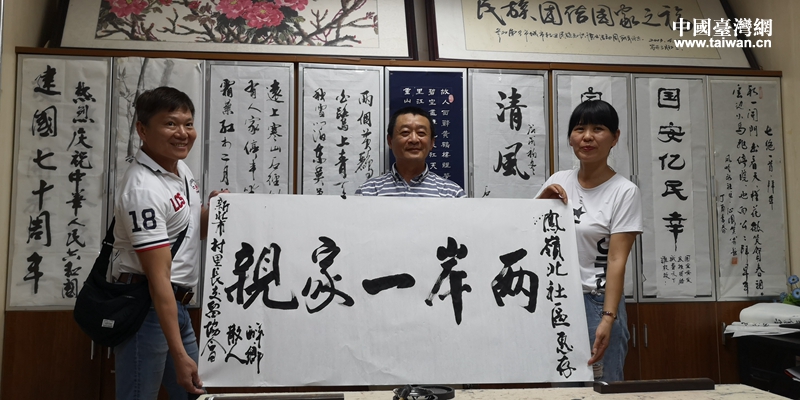 團(tuán)員張宗麟即興書寫一幅“兩岸一家親”的書法贈送給鳳嶺北社區(qū),希望兩地基層工作者加強(qiáng)互動交流。(中國臺灣網(wǎng)廣西南寧市臺辦通訊員 董 彬)