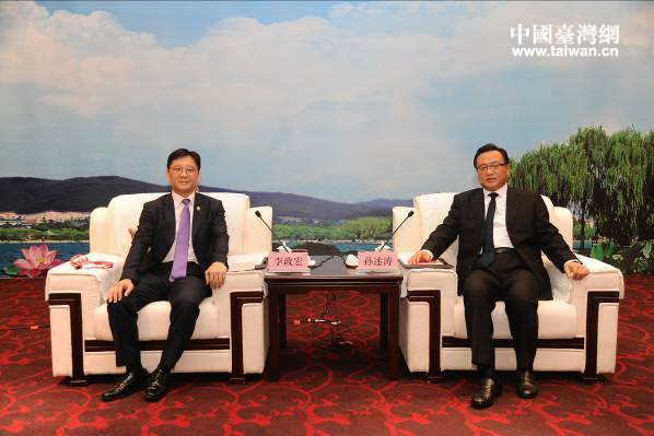 濟(jì)南市委副書記、市長孫述濤會見了全國臺企聯(lián)會長李政宏一行。(圖片來源:濟(jì)南市臺港澳辦)