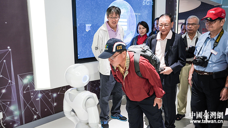 臺北市臺澎金馬各縣市同鄉(xiāng)會總干事聯(lián)誼會參訪團(tuán)與5G智能機(jī)器人互動(dòng)。(圖片來源:北京市臺聯(lián))