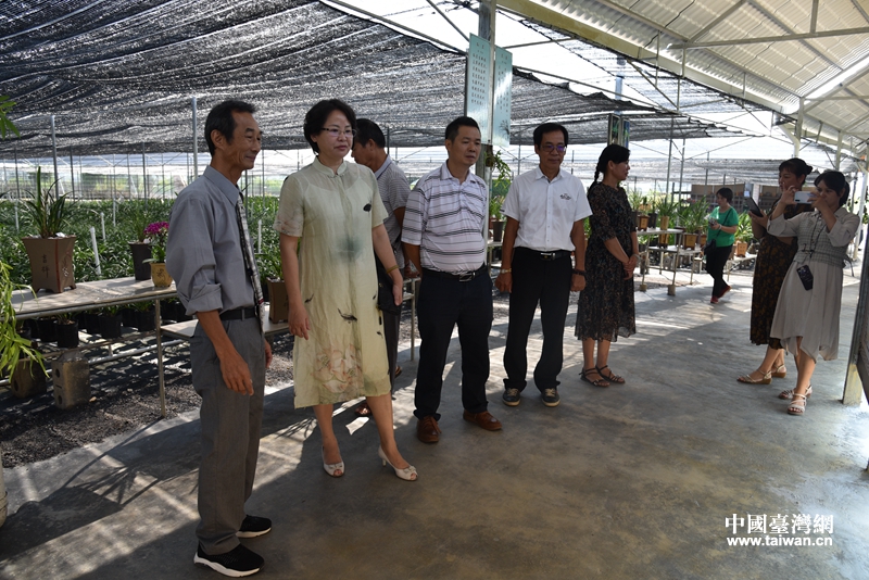 葉國斌(左一)介紹蘭花品類(圖片來源:廣西玉林市臺(tái)辦)