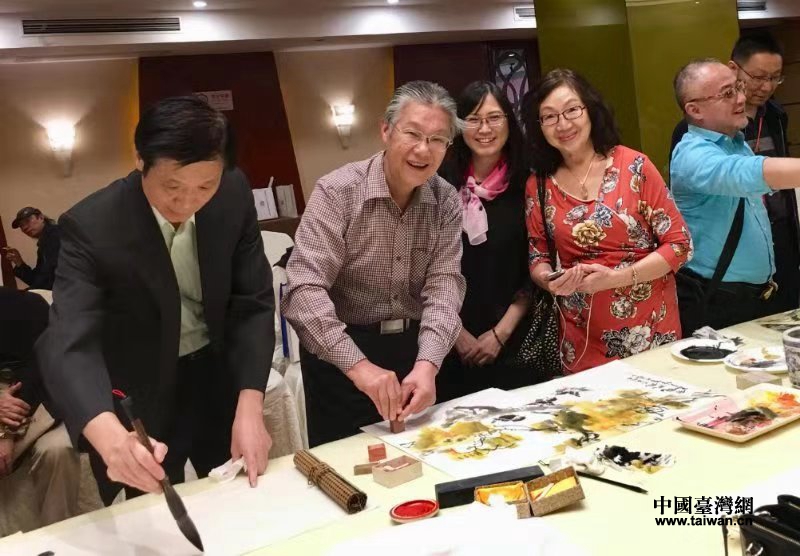 藝術(shù)家們現(xiàn)場揮毫(圖片來源:上海市臺辦)