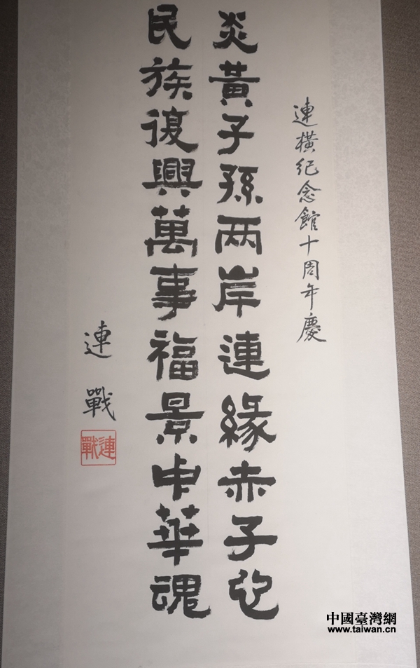 連戰(zhàn)在連橫紀(jì)念館十周年慶上的題辭(圖片來源:杭州市臺(tái)辦)
