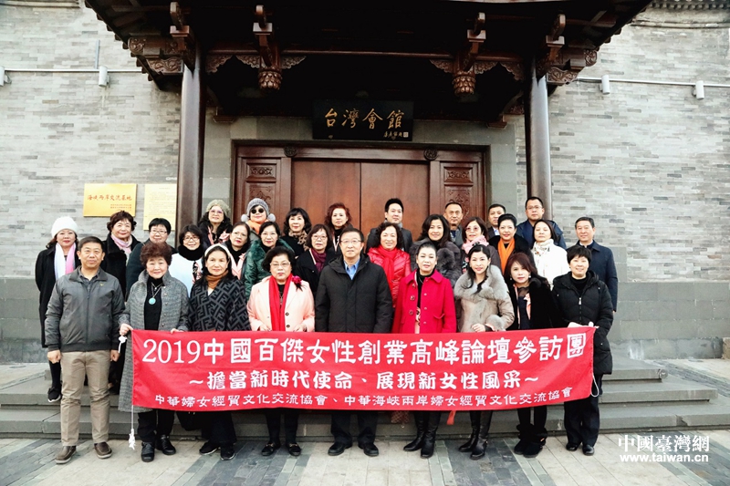 中國臺灣網(wǎng)12月10日訊 12月9日,來京出席“2019中國百杰女性創(chuàng)業(yè)高峰論壇”活動的臺灣中華海峽兩岸婦女經(jīng)貿(mào)文化交流協(xié)會代表團一行28人,在團長蔡鈴蘭的帶領(lǐng)下,到訪北京臺灣會館。北京市臺聯(lián)黨組書記王蘭棟、會長高峰等陪同參觀并交流座談。