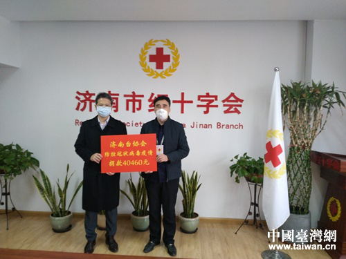 2月4日,濟南市臺協(xié)會會長陳世偉代表住濟臺商臺胞親手將愛心款送到濟南市紅十字會。(圖片來源:山東省臺港澳辦)